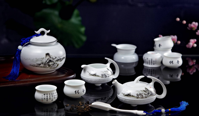 傳香.羊脂玉瓷水墨茶具12件套>