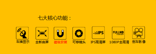 功能詳述: 全玻璃曲面屏設計,無邊框更圓潤細膩 IPS全視角高清屏采用全貼合工藝 攝像頭采用創新型粘貼式,可隨意粘貼在任意位置 全玻鏡頭組支持拍攝1080P全高清專業畫像 可視廣角高達170°,完整記錄不留死角 后置720高清防水鏡,支持倒車影像功能 車牌號碼顯示功能讓每段視頻有據可查 更簡易的磁吸式安裝,告別綁帶式捆綁