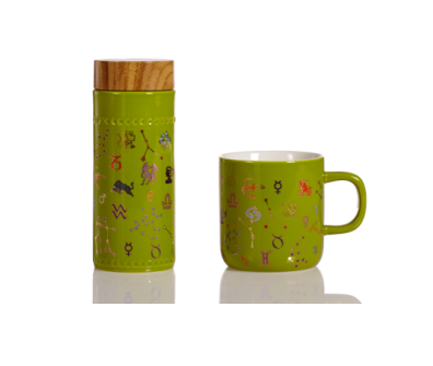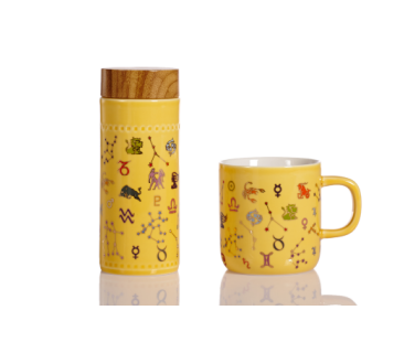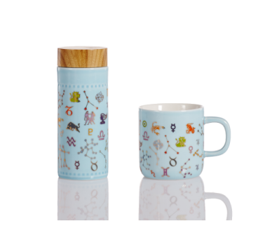 品名:12星座隨身杯(木紋蓋) 釉色:牙白++彩釉貼花 容量:350ml (雙層) 規(guī)格:72x72x176mm