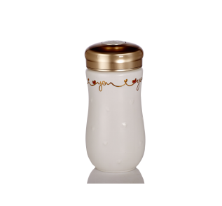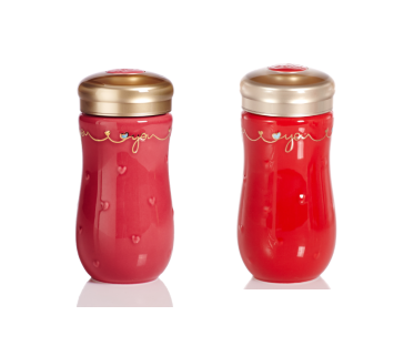 品名:一心一意隨身杯 釉色:中國紅+手工描金+彩釉 容量:380ml (單層) 規格:68X68X163mm
