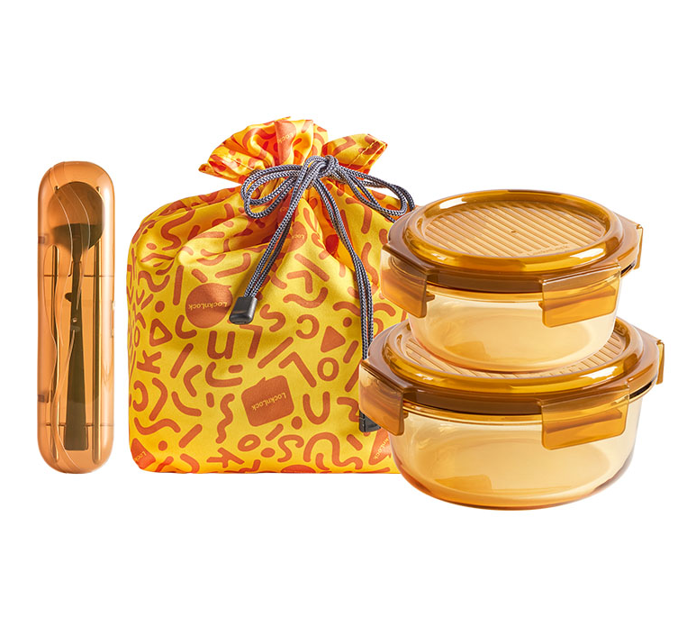 樂扣樂扣 晶彩琉光琥珀色圓形玻璃保鮮盒四件套